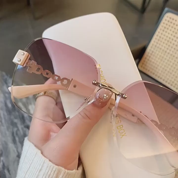 Más que un simple accesorio, estas gafas son una declaración de estilo. El marco grande sin montura te da un look retro-chic, mientras que la cadena incluida añade funcionalidad y elegancia.
